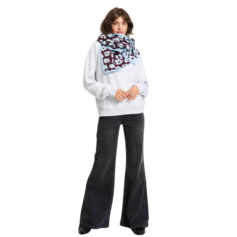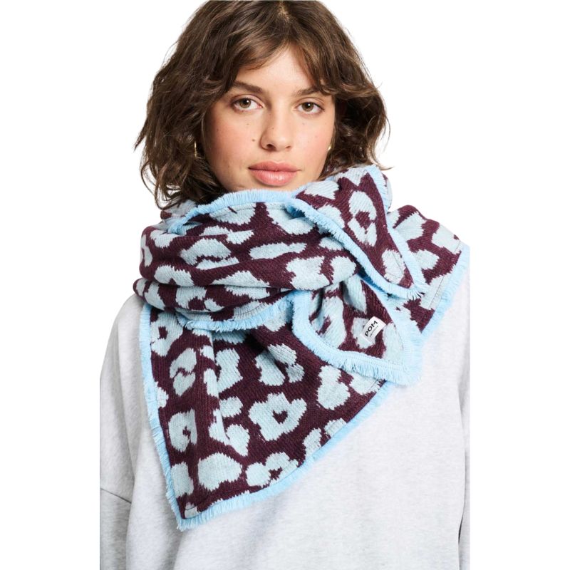 Descubre la bufanda animal print de POM Amsterdam, una de esas piezas únicas que transforman un look al instante. Confeccionada en un tricot suave y envolvente, combina un profundo tono burdeos con un azul cielo luminoso, creando un contraste elegante y actual.