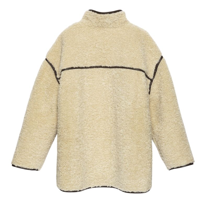 Chaquetón de borreguillo en tono beige con detalles en contraste. Una prenda clave para los días más fríos que combina comodidad, tendencia y calidez. Su diseño oversize y cuello subido aportan un aire actual y versátil, perfecto tanto para looks casual de diario como para elevar un outfit urbano con estilo.