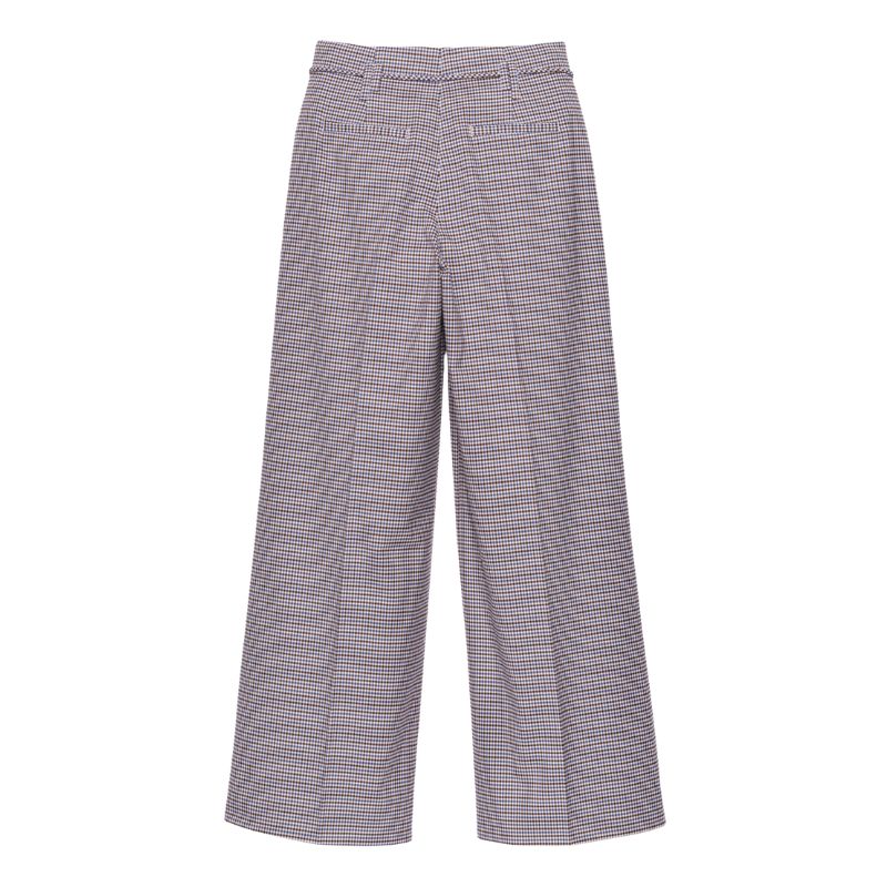 Su cintura alta con cinturón del mismo tejido realza la silueta y permite un ajuste cómodo y favorecedor. El estampado de cuadros en tonos neutros añade un aire clásico y atemporal, fácil de combinar con camisas, jerséis o blazers de la nueva temporada.