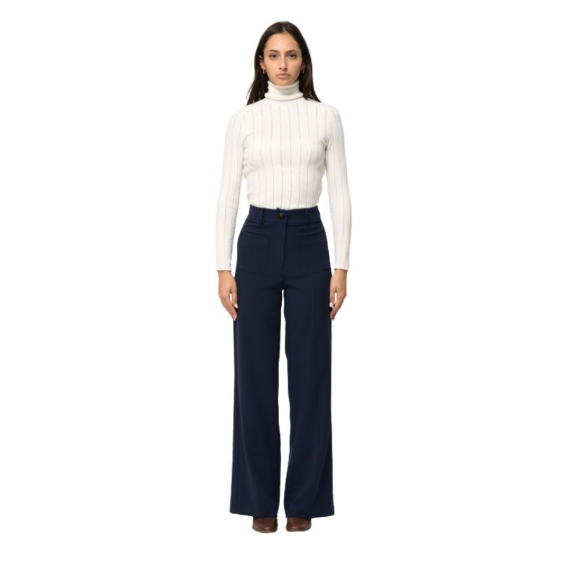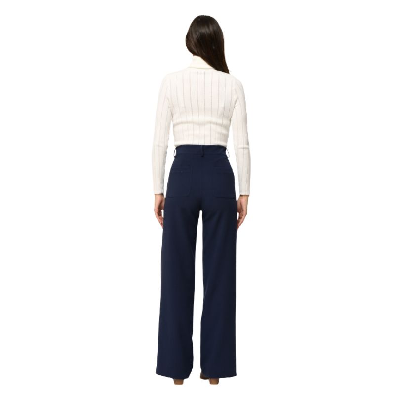 Pantalón marino con raya marcada, corte recto y bolsillos delanteros a plastón.