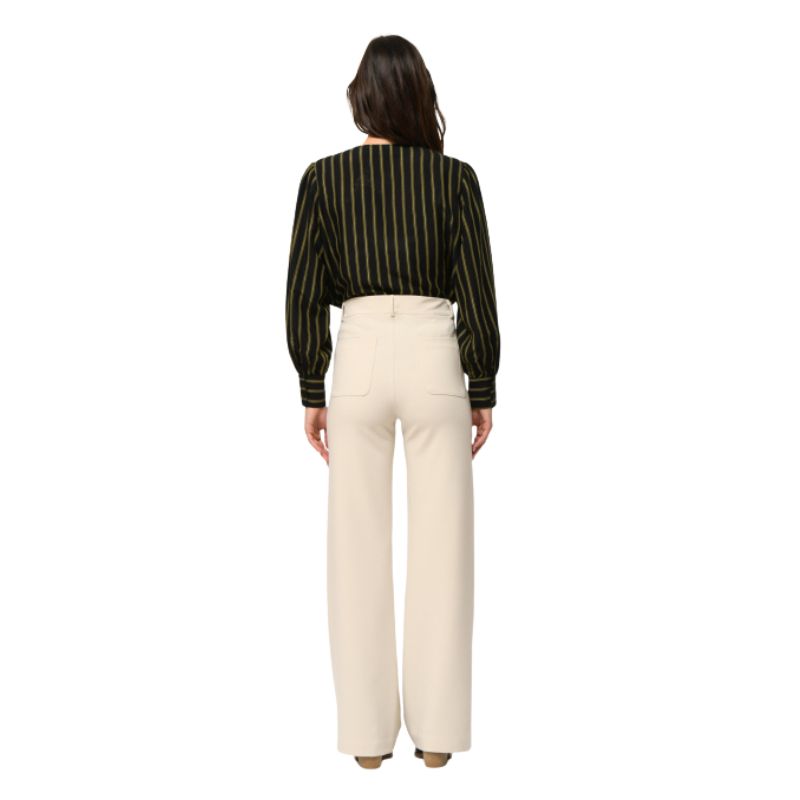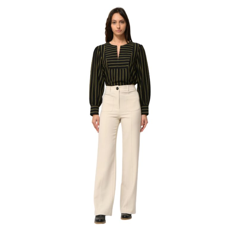 Pantalón blanco con raya marcada, corte recto y bolsillos delanteros a plastón.